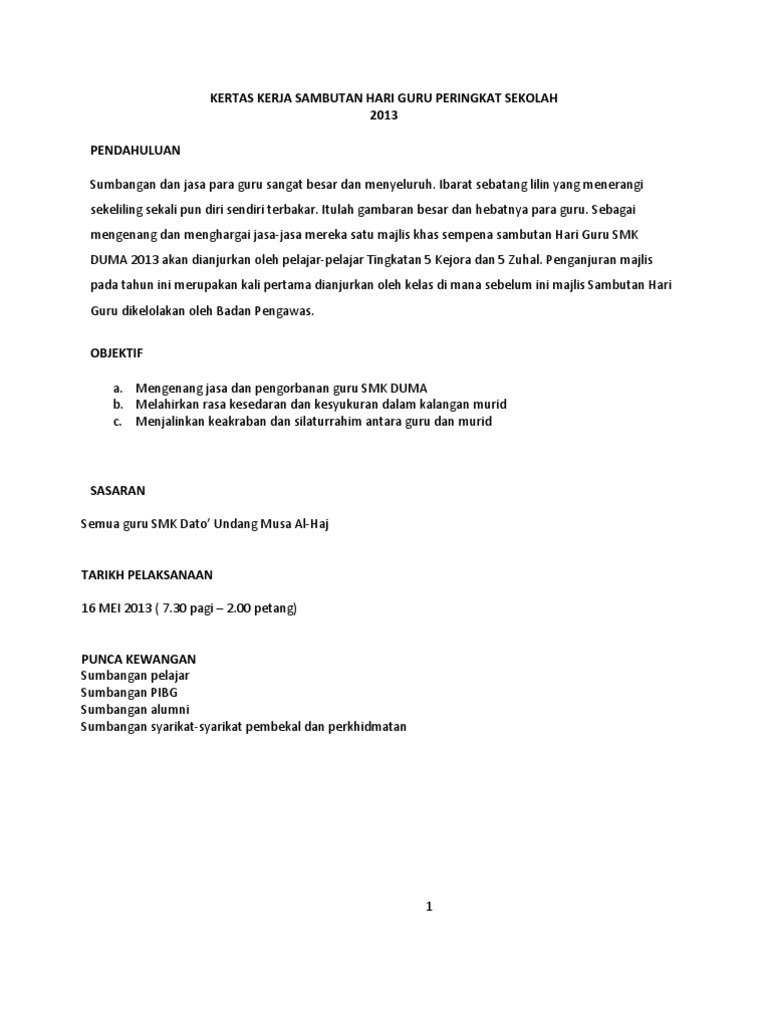 Kertas Kerja Sambutan Hari Guru Peringkat Sekolah Pdf